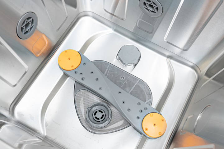 洗碗机部分比拟于我之前的项目作念了相当多的升级。内壁一样为不锈钢材质,底部喷淋臂的出水口比之前的要多好多。新增配备了软水组件。两侧设有透风孔,增多了 3D 环流烘相关统。同期还新增了自动开门功能。