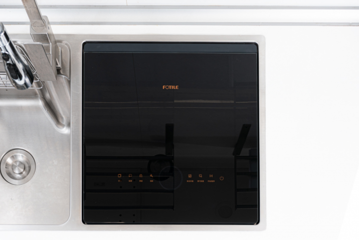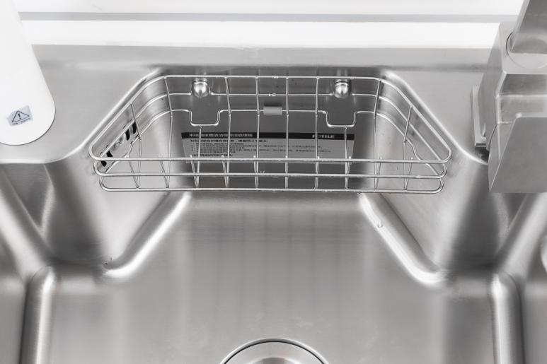 外不雅方面,这款 E5 策画相当浮松,极窄的边框策画,洗碗机与台面嵌平,装配后和橱柜形成了一个合座。水槽部分领受了不锈钢拉丝策画,便于清洁。