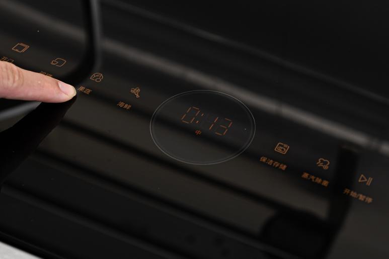 在体验完 E5 的洗碗功能外。咱们来望望它的其他特点,在前边板的功能菜单上,咱们不错使用触控的容貌,完成碗碟、果蔬、海鲜三项主要的清洗功能,以及保洁存储、蒸汽除菌两项不错在碗碟洗涤后附加的功能。并建造有触控的开门键,一键开门。不再像老款一样建造把手,外不雅更好意思不雅的同期,洗碗后会自动开门也增强了干燥餐具的成果。