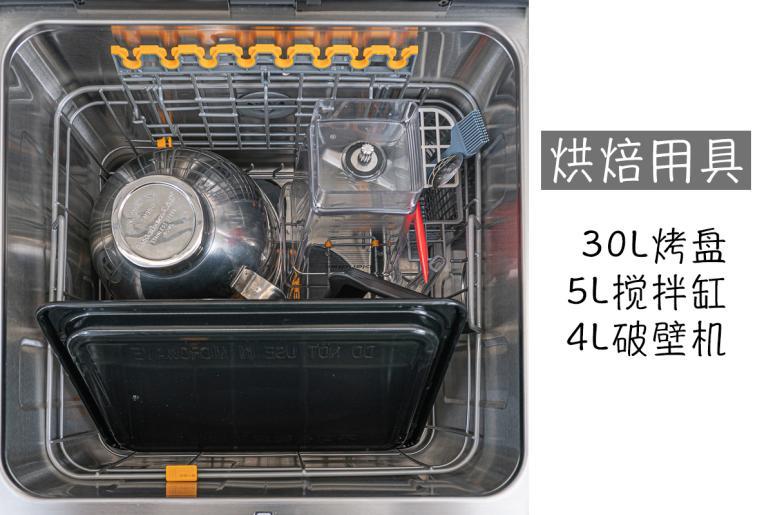 最让我惊喜的是,平日烘焙的用具也能放得下,30L 烤箱的烤盘 + 搅动机的搅动杯 + 除湿机的搅动缸王人能一次放下,突出是 30L 的烤盘,之前的洗碗机是放不下的,这点升级相当平静。